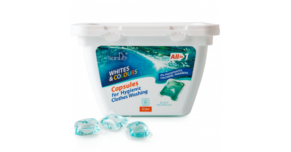 Растворливи капсули за похигиенско перење на облека од памук, лен, синтетитика и мешани ткаенини.